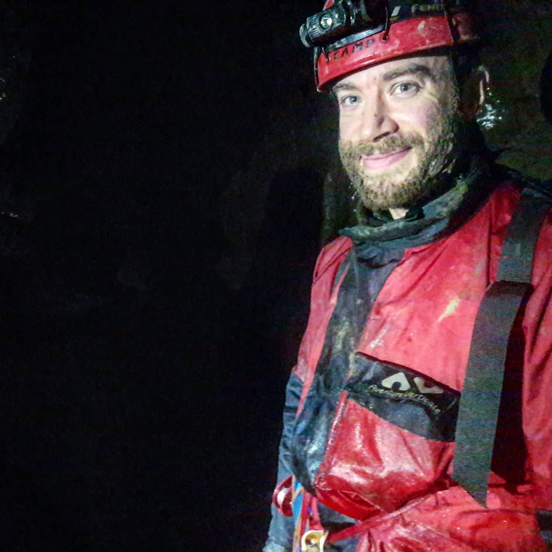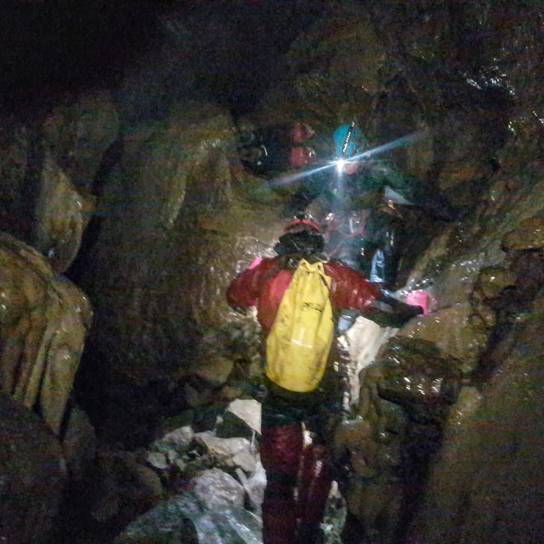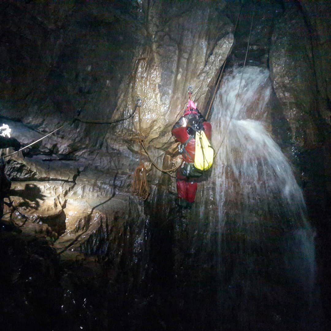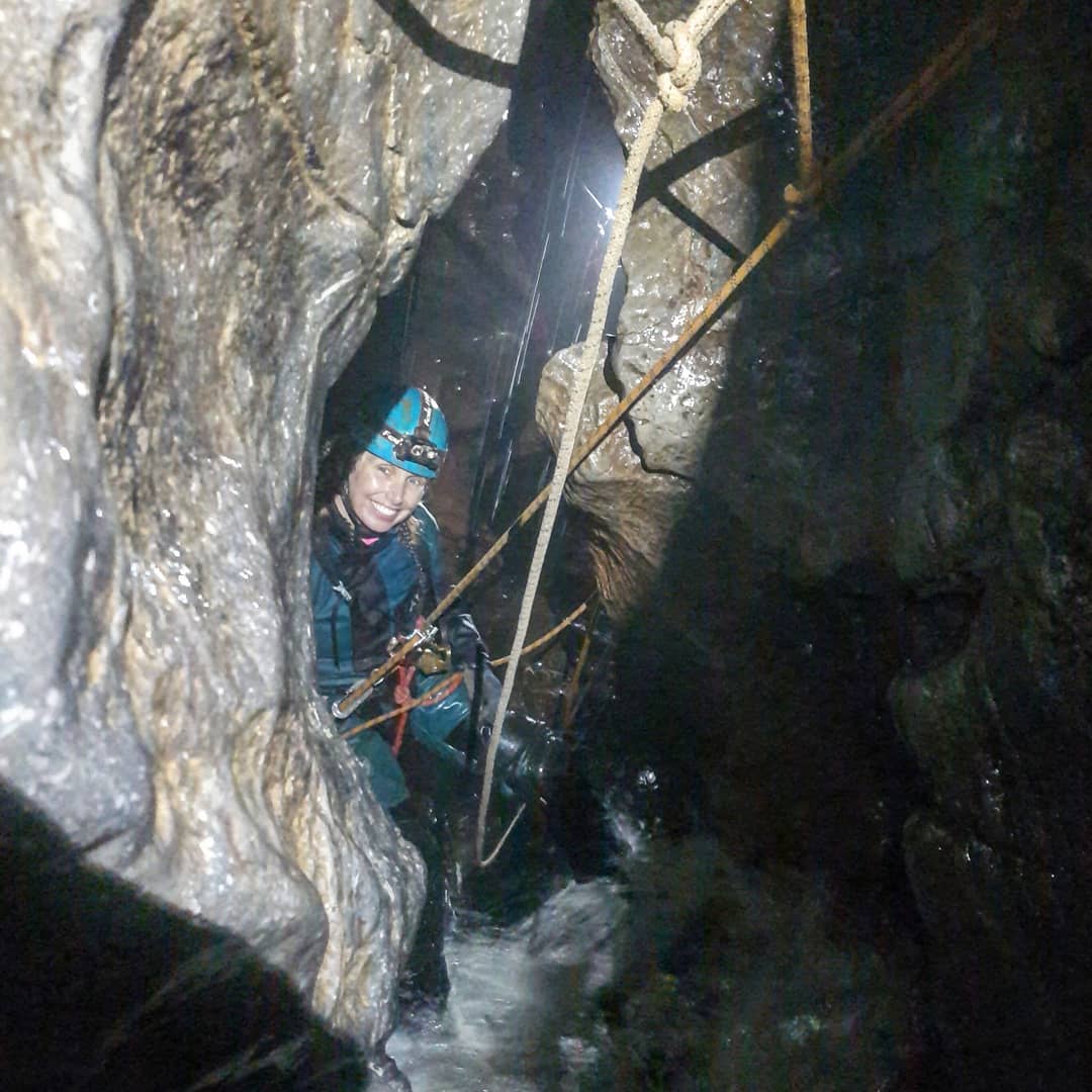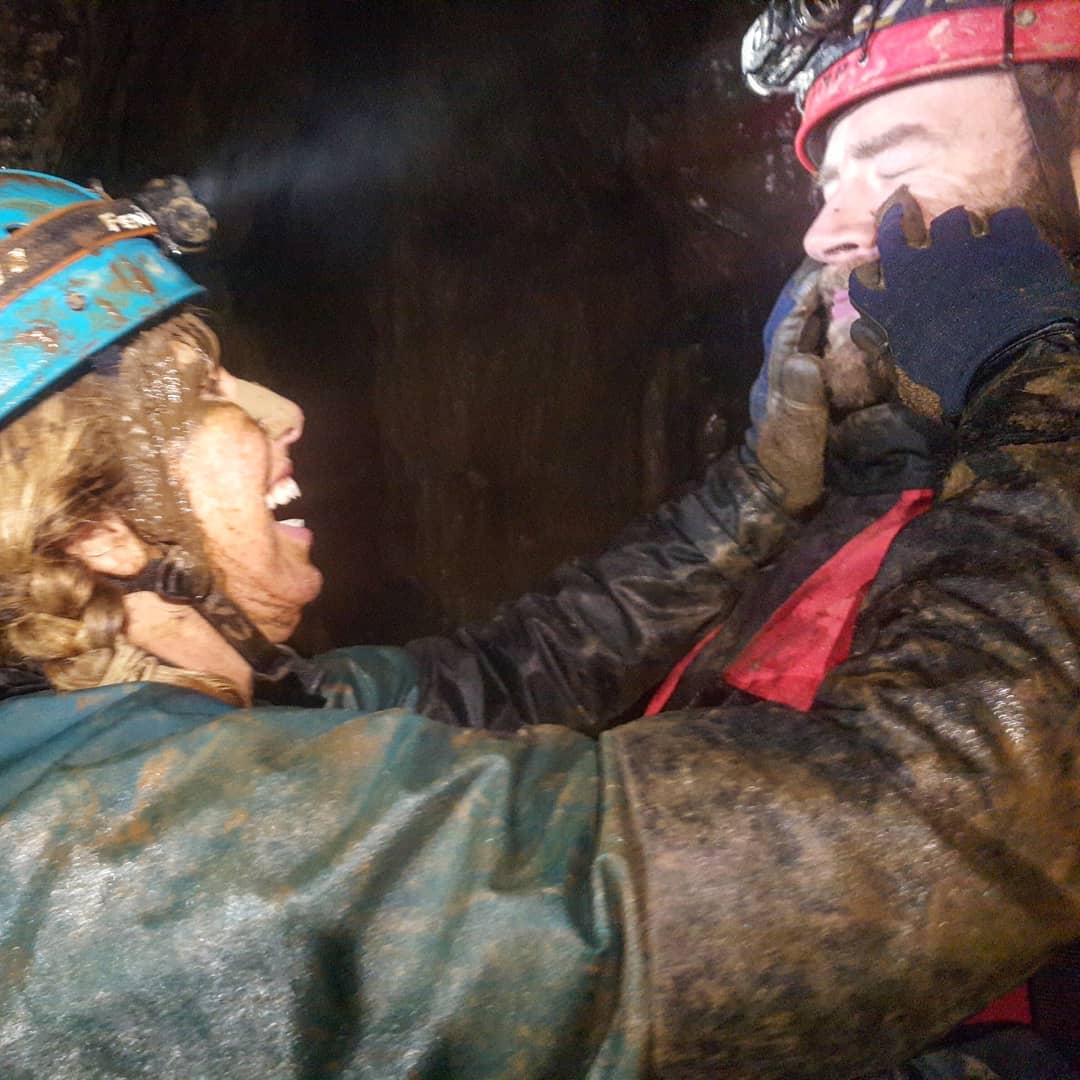 This was Alan and Siobhan’s first time in P8, so as we descended Pitch 1 to the traverse, they got to experience it all. Specifically all the water, experienced directly into the face. It was invigorating.