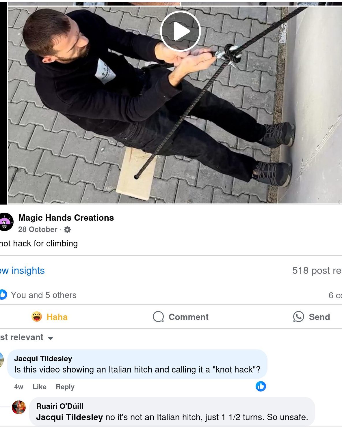 Posts that might be genuinely dangerous or unclear get constructive feedback. As one member noted, “Wearing climbing hold earring to transform your ears in a climbing wall” might be silly, but “Use all your gear to build an anchor before climbing the next pitch” opens up important discussions about gear management and safety.