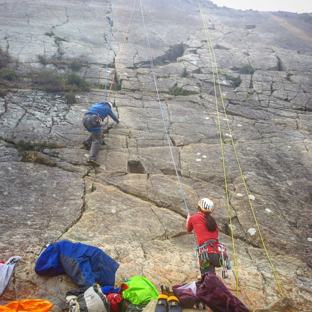Newly leading Alex putting up ‘new’ routes on the upper crag and encouraging Albina to give them her first leads.
