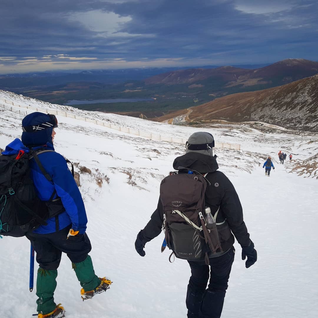 “I really had not thought that I’d be up for, or able to, climb Cairn Gorm (1245m) wearing crampons. It was hard, and I was the slowest on the up, but not significantly slow! So it’s fair to say my age did tell, but only a little. So Big Mountains are within everyone’s reach! “