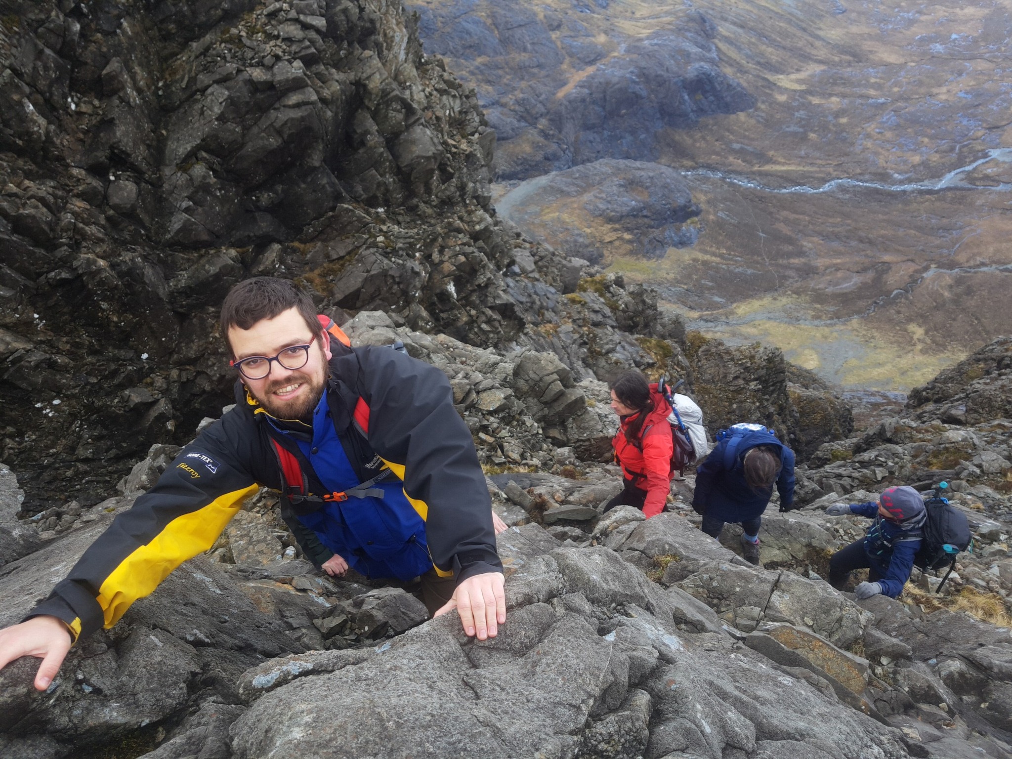 A first day in Skye with the Climbing Clan at Easter. Scrambling up “not the drainpipe”.