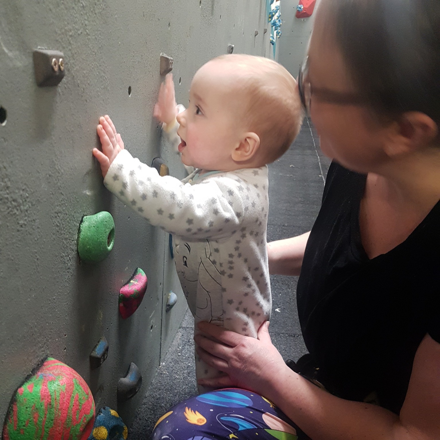 The challenge is that realistically, you are only well placed to support your child climbing, and if they’re a baby, they ain’t going up yet! Even with a 2:1 parent/baby ratio, you’re still going to struggle to get any climbs in without a third person.