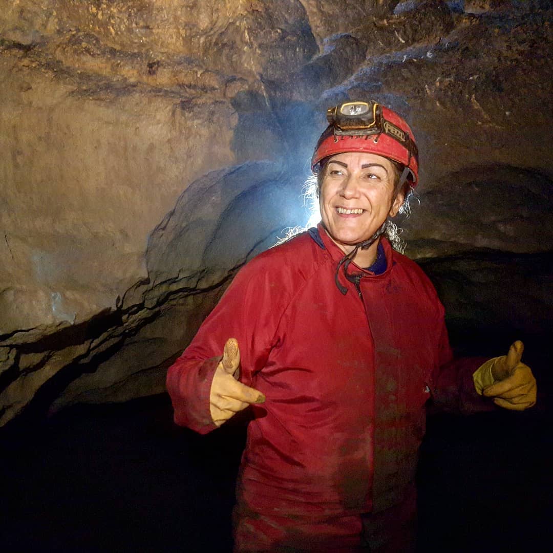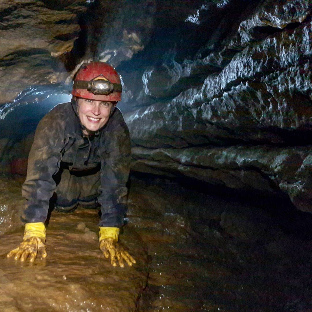 ¿Leanne leading the way through part of the cave