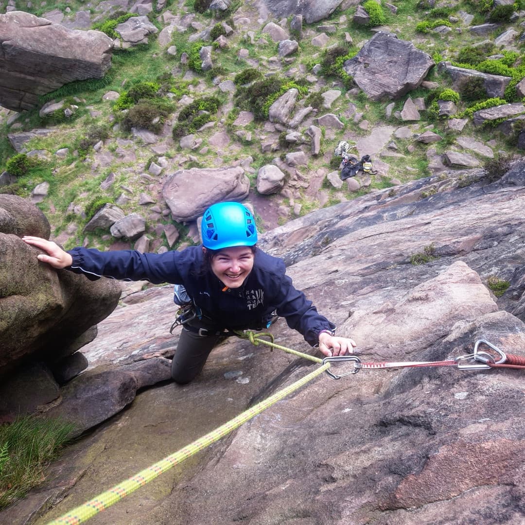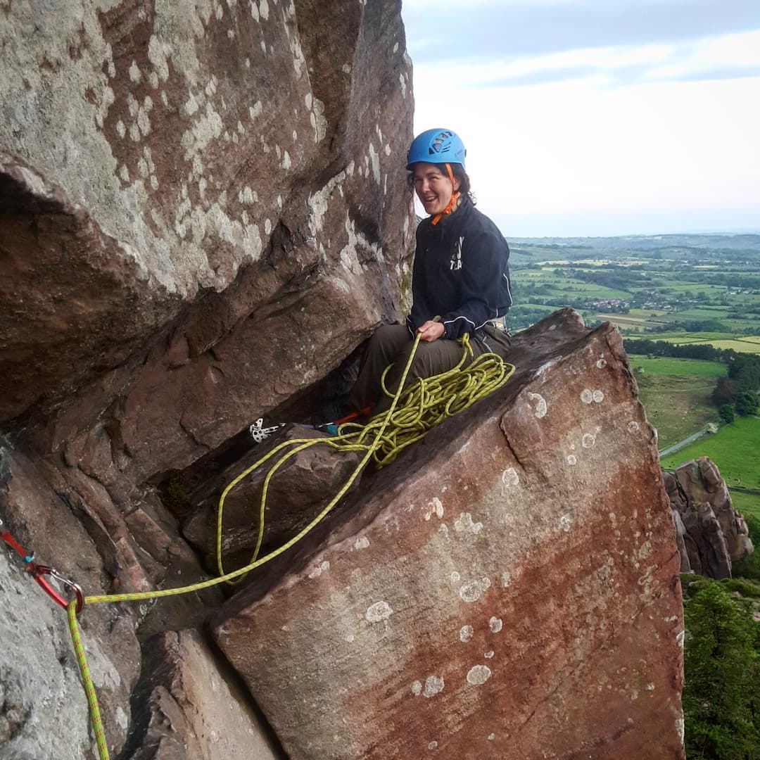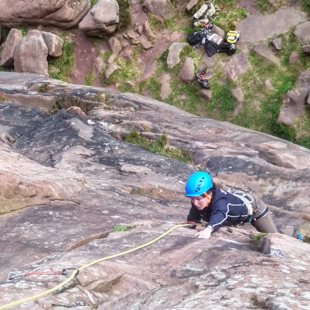It was memorable for her as it was her first time climbing at the Roaches, her first multipitch, and the highest route she’d done yet.