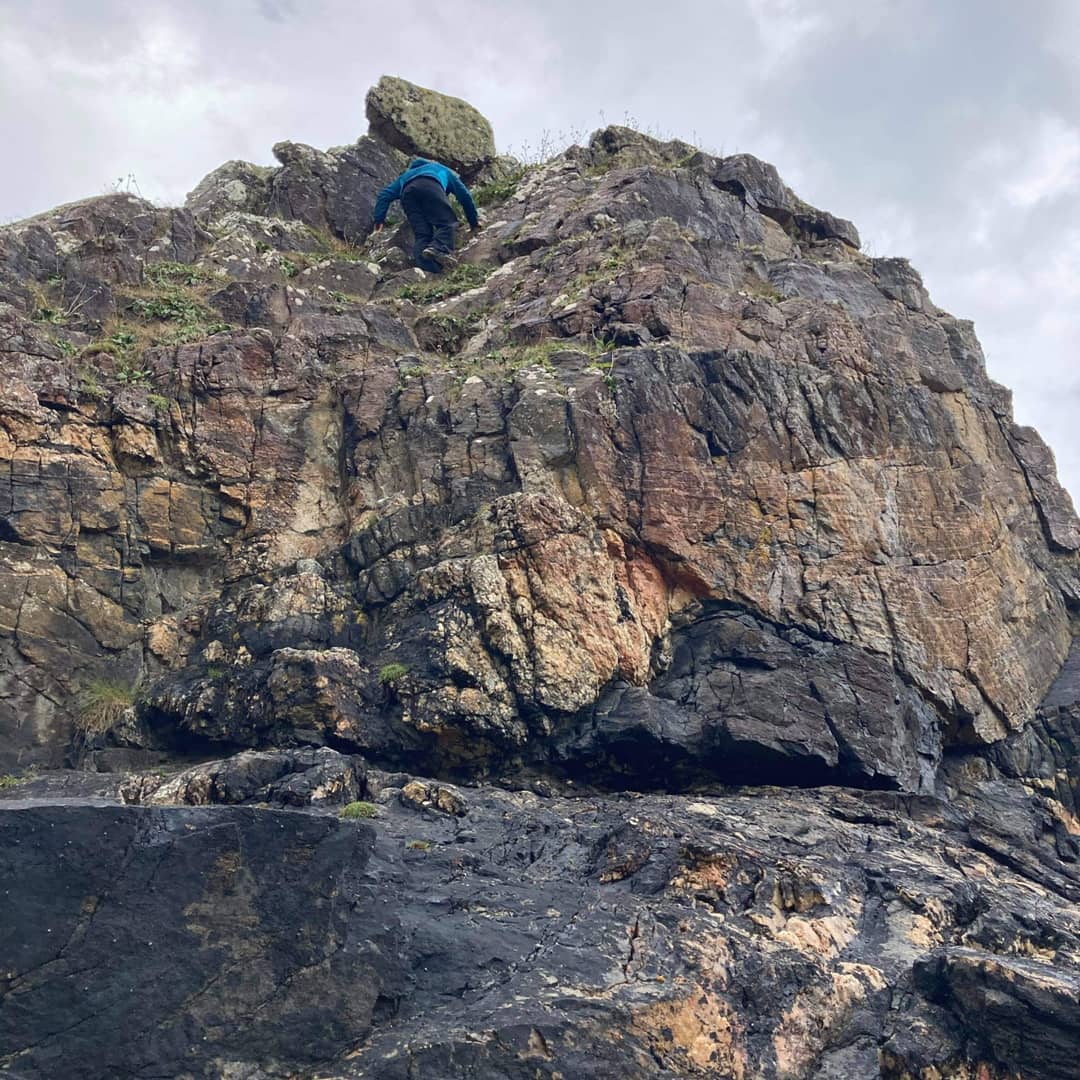 And on this sea stack, the way up had been slightly challenging. I reached the top. How would the descent be?