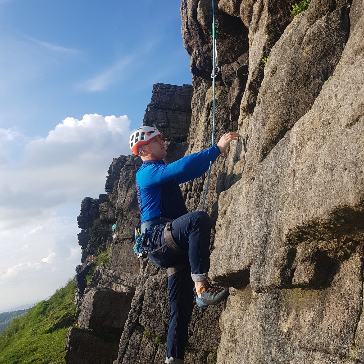 In honesty, whilst it was pleasant to get outside and enjoy the ambience, it didn’t allow me to get any climbing done. Actually, that’s a lie. The (then) Climbing Clan Training Officer belayed me up Middle & Leg (D) from the top once, which was a Great Success.