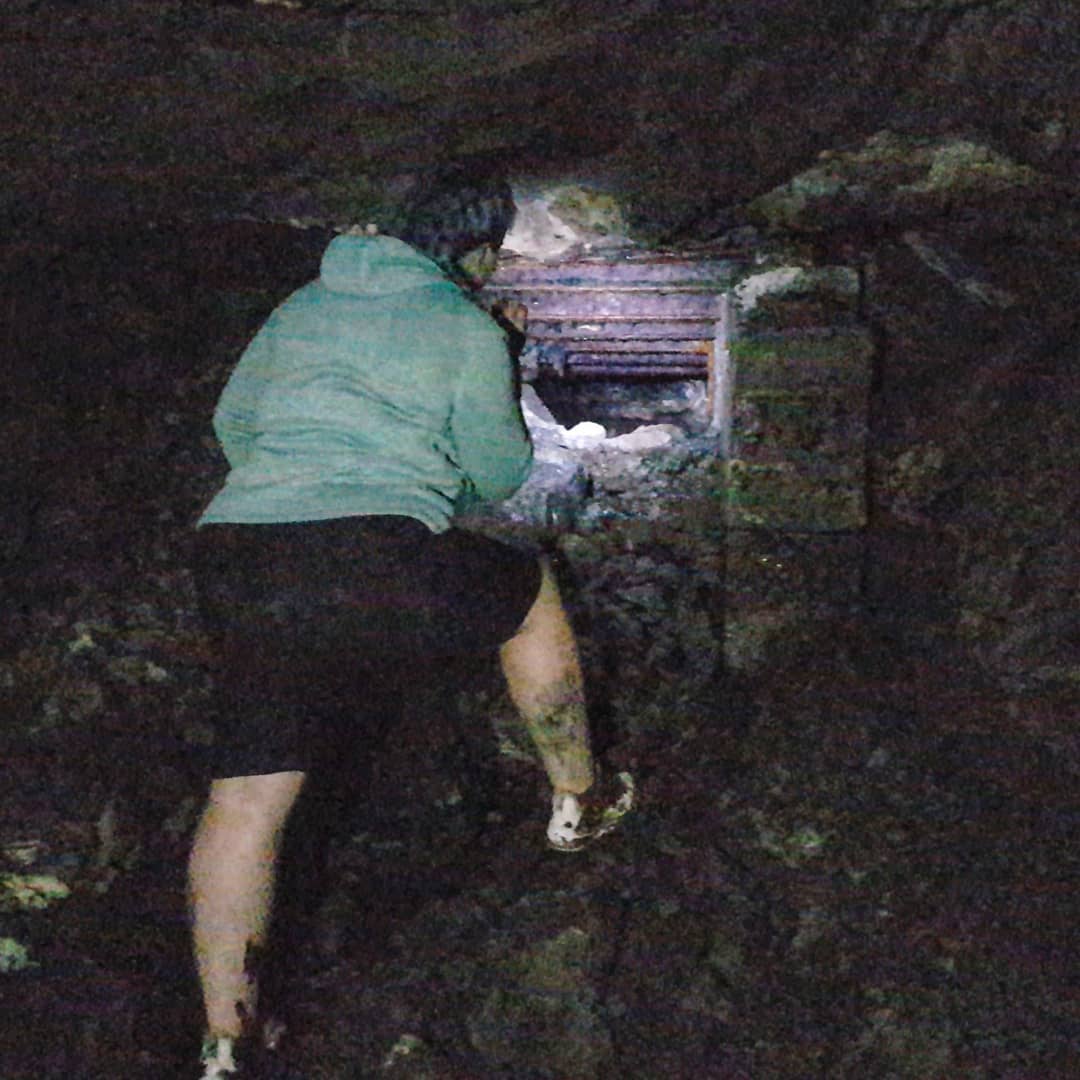 After an adventure with the wrong bramble thicket, by crossing a wet stream, a mud stream and a slippery log, we arrived at the mine entrance.