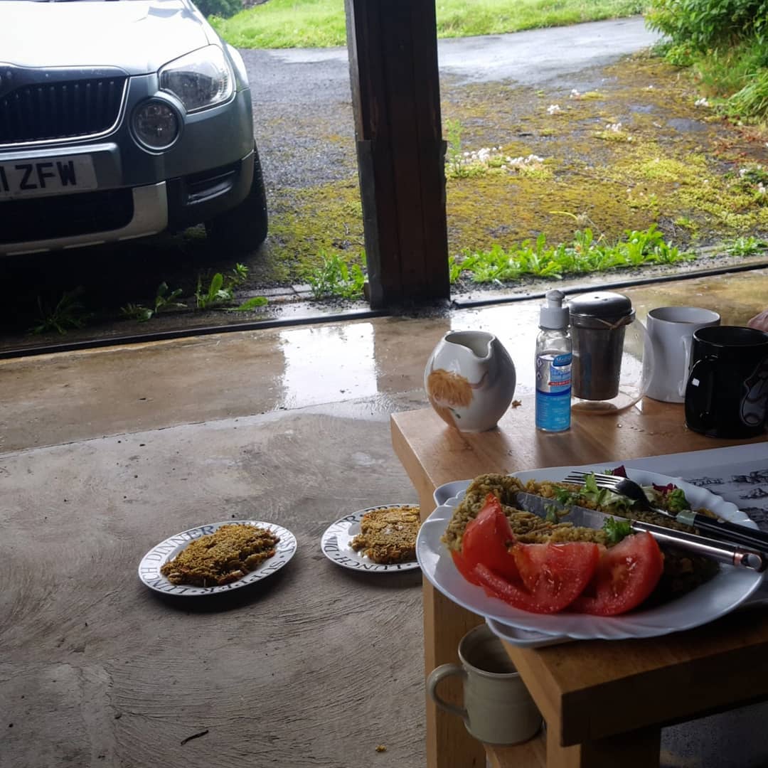 A dinner party in a garage in the pouring rain, I can’t remember the last time before covid I was invited to one of these but when JP and Alex invited mum and me over for Plov in the Carport, it was one of the most exciting things that week, or possibly ever!